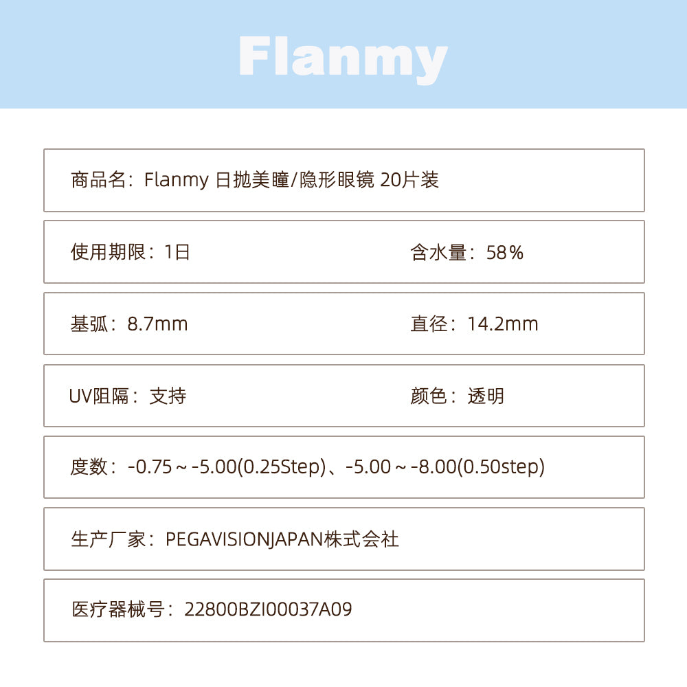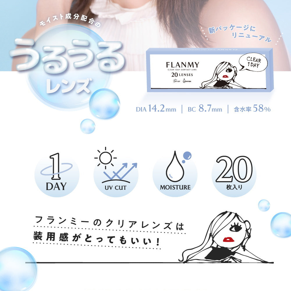【日本美瞳/日本直邮】flanmy clear 日抛美瞳/隐形眼镜-20片装-DIA14.2mm | BC8.7mm | 高含水58%