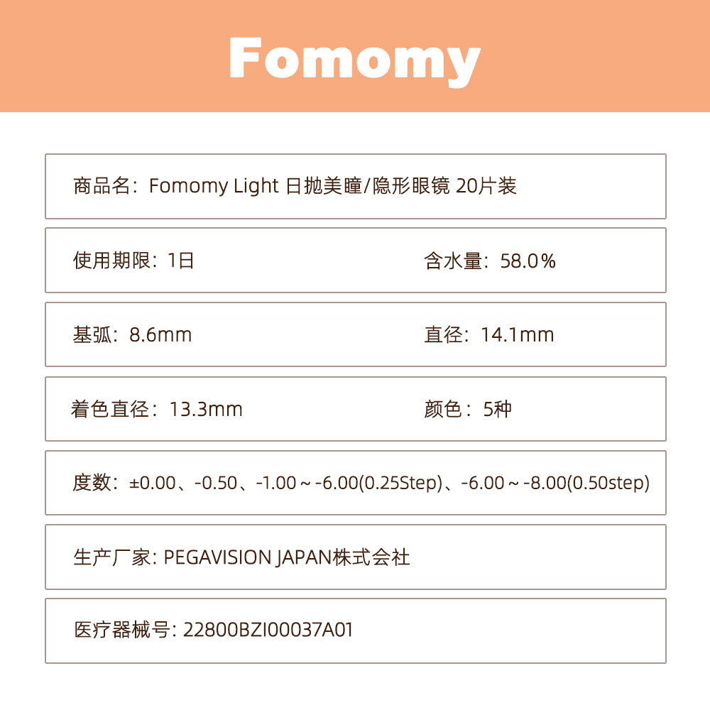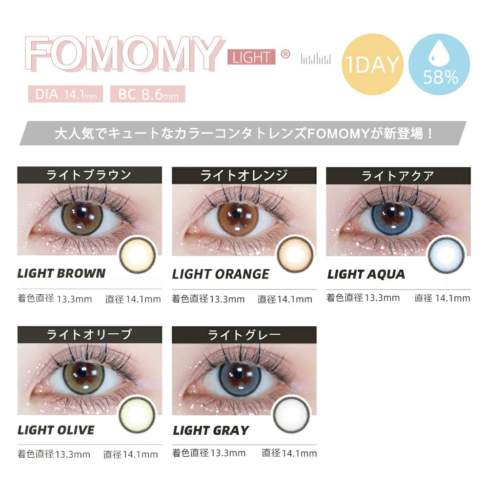 【日本美瞳/日本直邮】-Fomomy Light日抛美瞳/隐形眼镜-20片装-DIA14.1mm | BC8.6mm | 高含水58%