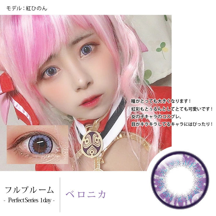 | 商品説明 | 大人気コスプレカラコン“パーフェクトシリーズ”から新シリーズが登場☆ お花に見立てたデザインと配色、大きめの内径でくりんとかわいい印象になれる♪ “怖くならずに”ちゅるんと可愛く瞳の色を変えれます☆ 着色部分が直接目に触れない製法で安心!!嬉しいUVカット機能も◎ |